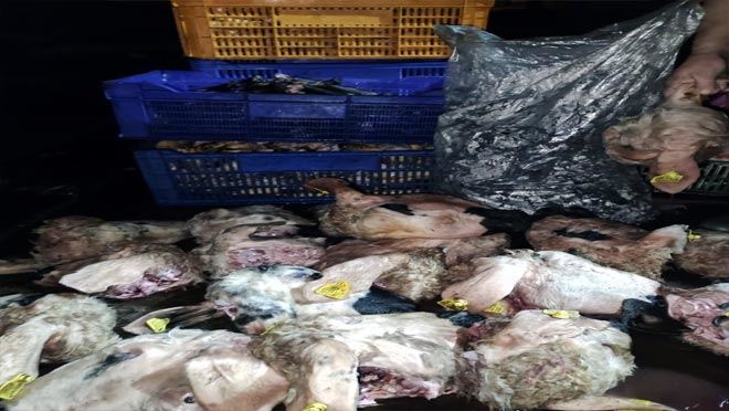 Tarım ve Orman Müdürlüğü ekiplerince gerçekleştirilen denetimlerde mevzuata uygun koşullarda muhafaza edilmeyen ve onay almadan işleme yapılan 5.5 ton sakatat imha edilirken, ortaya çıkan görüntüler mide bulandırdı.