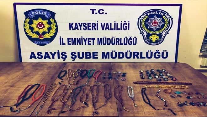 Kayseri'de bir iş yerinin camını kırarak 65 bin TL değerinde gümüş takı ve tespih çalan şahıs, 45 saatlik kamera kaydı izlenerek tespit edildi. Polis ekipleri tarafından yapılan çalışmada şüpheli şahıs 130 parça çalıntı malzeme ile yakalanarak gözaltına alındı.