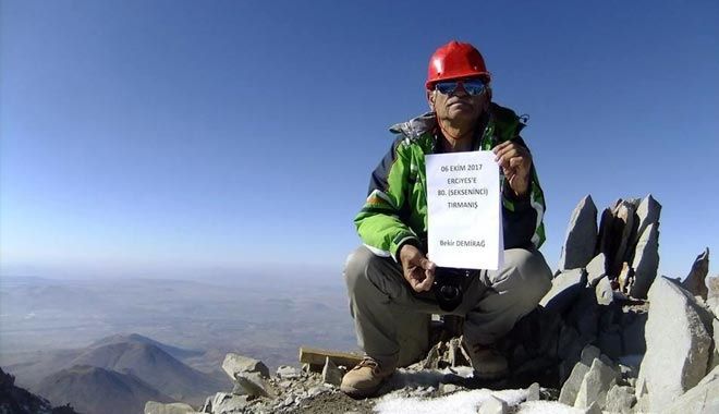 KAYSERİ (İHA) - Kayseri´de 71 yaşındaki gazeteci ve dağcı Bekir Demirağ, özel ilgi duyduğu 3 bin 917 metre yüksekliğindeki Erciyes´e 80. kez zirve tırmanışı gerçekleştirdi. Demirağ, "Hedefim zirvede dalya demek. Bu yüzden 100. zirve tırmanışına kadar bu sevgi bitmez´´ dedi.
