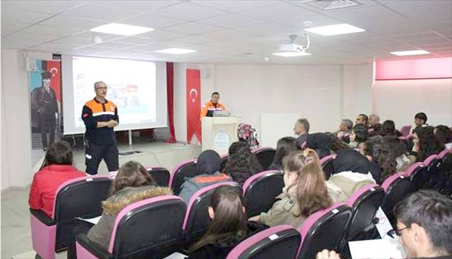 İl Afet ve Acil Durum Müdürlüğünde görevli Hasan Say ve Rıza Taştan tarafından verilen seminerde afet öncesinde alınacak tedbirler ve afet sırası ve sonrasında yapılması gerekenler anlatıldı.