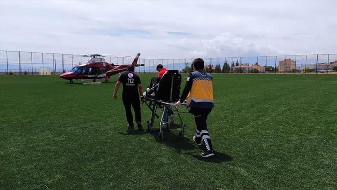 Kayseri'nin Yeşilhisar ilçesinde doktorun dikkati neticesinde solunum güçlüğü çektiği belirlenen ve kısa sürede solunumu duran 76 yaşındaki hasta, hava ambulansı ile merkeze sevk edilerek tedavi altına alındı.