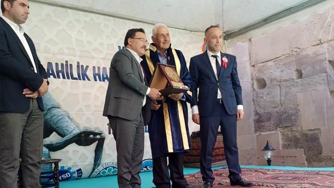 Programın sonunda Ahi seçilen saatçi Selahattin Koca ile nakliyeci Mustafa Akşar’a kaftanları giydirilerek, plaket verildi.