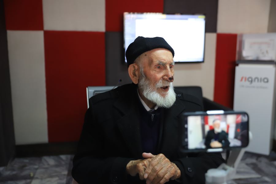Kayseri Büyükşehir Belediye Başkanı Dr. Memduh Büyükkılıç’ın selamlarını getirdiklerini, işitme cihazı için geldiklerini söyleyen Büyükşehir Belediyesi ekiplerini karşısında gören 97 yaşındaki Nail Yazaroğlu, “Bismillahirrahmanirrahim. Aleyküm selam, hoş geldiniz. Allah razı olsun. Ben size kurban olayım” diyerek kısa süreliğine şaşırdı.