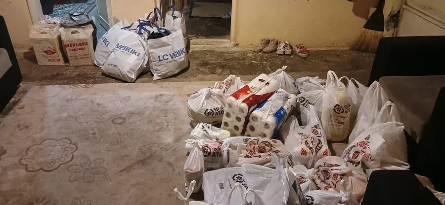 Ekip tarafından aileye; temel gıda malzemeleri ile mont, bot ve çeşitli kışlık kıyafetlerden oluşan yaklaşık 50 bin TL değerinde yardım ulaştırıldı. Ailenin ikinci evlilik olması nedeniyle çocuklardan 6’sının yetim olduğu öğrenildi.