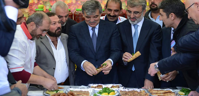 Cumhurbaşkanı Abdullah Gül, cami çıkışında çevre esnaflarından bir manavın öğle yemeği için hazırladığı sofraya davetini geri çevirmeyerek icabet etti. Esnafı kırmayan Gül, içeri girdi ve kendisine ikram edilen ilimiz tabiriyle kıymalı olarak adlandırılan etli pide ile peynirli pideden yedi. Gül, pidenin üzerine ikram edilen üzümden aldı. Halka tatlı da ikram edilen Gül, fazla olduğu için yemedi. Yemek sırasında Gül, esnaf ile sohbet ederek işlerini sordu. Gül, kendisine ikram edilen pidelerin büyük bir bölümünü basın mensuplarına ikram etti…