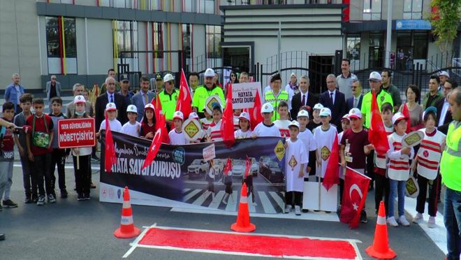 İçişleri Bakanlığınca yurt genelinde başlatılan ‘Önce Yaya Uygulaması’ çerçevesinde, İl Emniyet ve Milli Eğitim Müdürlüğünce tertiplenen farkındalık etkinliğinde görev alan minik yürekler sürücü amca ve teyzelere seslenerek ‘Önce Yaya’ kuralına özen gösterin çağrısı yaptılar.