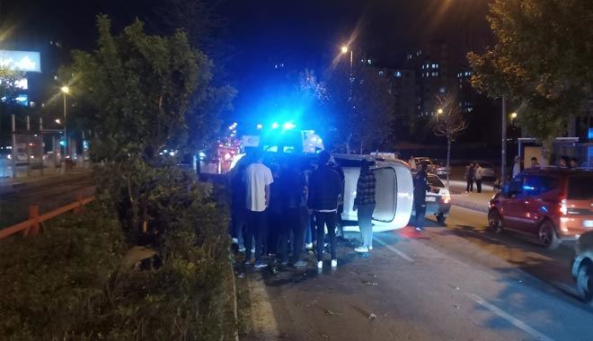 Sivas Bulvarı üzerinde önceki gece yaşanan kazada refüje çarparak takla attıktan sonra yan yanan otomobilde bulunan 3 kişi yaralandı.
