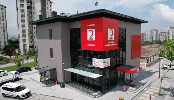 Mülkiyeti Talas Belediyesi’ne ait arsa üzerine inşa edilen ve hayırsever Halil Ünal’ın da maddi katkı sağladığı Kızılay hizmet binası Mevlana Mahallesi Halef Hoca Caddesi üzeri, Halef Hoca Mezarlığı yanında bulunuyor.