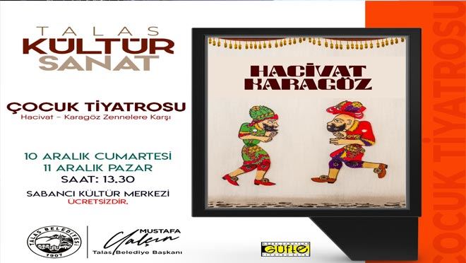 Talas Belediyesi’nin Aralık ayı kültür – sanat etkinlikleri 10 Aralık Cumartesi ve 11 Aralık Pazar günleri sergilenecek Hacivat-Karagöz perde oyunu ile başlangıç yapacak.