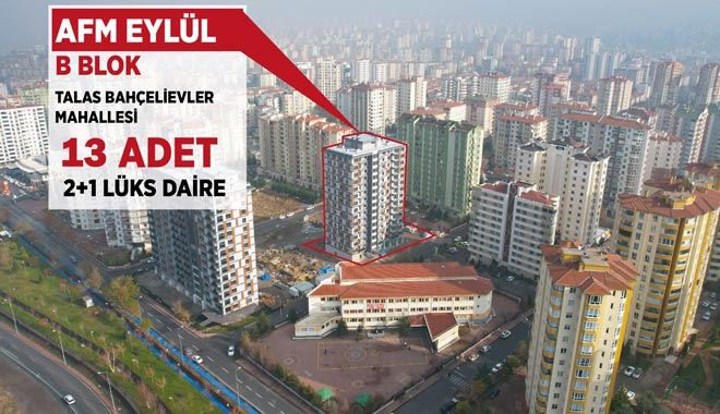 Daha sonra ise Bahçelievler Mahallesi Gürsu Sokakta yer alan AFM Eylül Sitesi B Bloktaki 13 daire satışa sunulacak. İnşaat kalitesinin yanında etrafındaki sosyal donatılarla da dikkat çeken daireler Fatma-Mustafa Hasçalık ilk ve ortaokulu, Kayseri Büyükşehir Belediyesine ait sosyal tesis ve spor salonu ile Talas’ın en güzel parklarından olan Muhsin Yazıcıoğlu Parkına da yürüme mesafesinde yer alıyor. 2+1 şeklindeki daireler 1 milyon 740 bin ile 1 milyon 850 bin lira arası muhammen bedellerle satışa çıkartılacak.