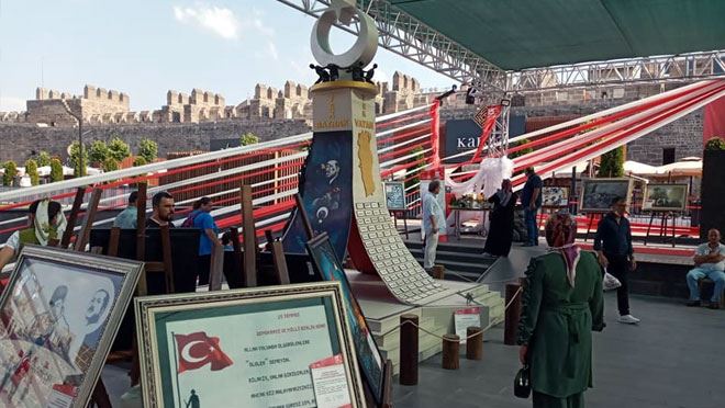 Tarihi Kayseri Kalesi’nde Demokrasi ve Milli Birlik Günü etkinlikleri kapsamında 15 Temmuz’da açılan ‘Türkiye Geçilmez Sanat Sergisi’ vatandaşların büyük beğeni ve ilgisi ile karşılaştı.