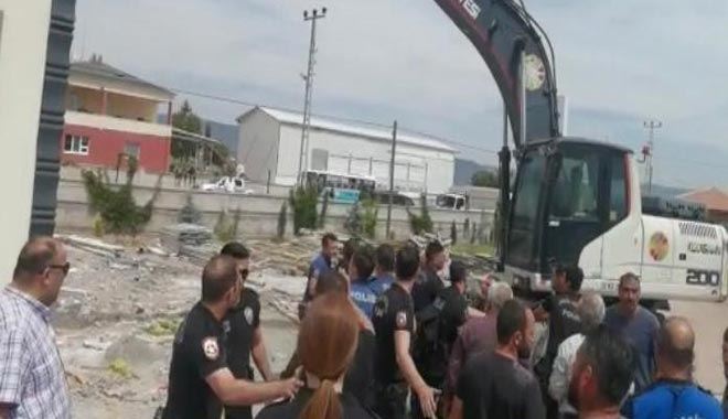 Vatandaşlarla görevliler arasında kısa süreli tartışma çıktı. Polis ekiplerinin müdahalesiyle olay yatıştırılırken, iş makineleri ruhsatsız yapının yıkımını gerçekleştirdi. İlçede bulunan ve ruhsatsız olan 4 yapının daha yıkımının gerçekleştirildiği öğrenildi.