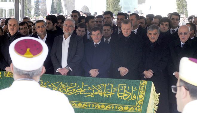 Tedavi gördüğü Yeditepe Üniversitesi Hastanesi´nde hayatını kaybeden kayınpederi Ahmet Özyurt (76) için Marmara Üniversitesi İlahiyat Fakültesi Camii´nde cenaze töreni düzenlendi. Törene, Cumhurbaşkanı Recep Tayyip Erdoğan, eşi Emine Erdoğan, TBMM Başkanı İsmail Kahraman, Başbakan Ahmet Davutoğlu, eşi Sare Davutoğlu, 11. Cumhurbaşkanı Abdullah Gül, eşi Hayrünnisa Gül, Başbakan Yardımcısı Numan Kurtulmuş, İstanbul Valisi Vasip Şahin, İstanbul Büyükşehir Belediye Başkanı Kadir Topbaş, Bilim, Sanayi ve Teknoloji Bakanı Fikri Işık, Çalışma ve Sosyal Güvenlik Bakanı Süleyman Soylu, Enerji Bakanı Berat Albayrak, Milli Eğitim Bakanı Nabi Avcı, Anayasa Mahkemesi eski Başkanı Haşim Kılıç, AK parti Genel Başkan Yardımcısı Mehmet Özhaseki ve Mustafa Ataş, MHP Milletvekili Ekmeleddin İhsanoğlu, AK Parti İstanbul İl Başkanı Selim Temurci, Milli Eğitim eski Bakanı Hüseyin Çelik, Enerji ve Tabii Kaynaklar eski Bakanı AK Parti Kayseri Miletvekili Taner Yıldız , Adalet eski Bakanı Sadullah Ergin, Avrupa Birliği eski Bakanı ve Başmüzakereci Egemen Bağış, iş adamı Ali Koç ve çok sayıda isim katıldı. Cumhurbaşkanı Erdoğan ve Başbakan Davutoğlu yoğun güvenlik önlemleri altında camiye geldi.