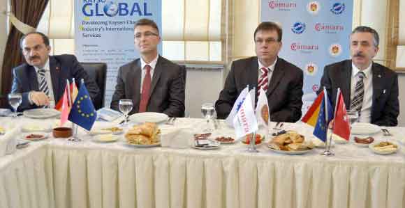 Kayseri Sanayi Odası’nda düzenlenen tanıtım toplantısına Kayseri Sanayi Odası Meclis Başkanı Nureddin Okandan, Nevşehir Ticaret ve Sanayi Odası Yönetim Kurulu Üyesi Yüksel Babaoğlu, Zaragoza Ticaret ve Sanayi Odası Genel Kurul Üyesi Irene Carmen ve çok sayıda sanayici katıldı. Toplantıda açılış konuşmasını yapan Kayseri Sanayi Odası Meclis Başkanı Nureddin Okandan, “Kayseri Sanayi Odası olarak Türkiye’nin Avrupa Birliği katılım sürecine tam destek veriyoruz. Günümüz dünyasında küreselleşme ile birlikte ülkeler arasındaki ticari sınırların nizami olarak kalktığı ve rekabetin daha çok ön plana çıktığı aşikardır. Bugün ülkemizin dünyasının sayılı ekonomileri arasında yer almasının en önemli nedeni özel sektörümüzün yapmış olduğu yatırımlar ve uluslar arası piyasalarda sergilediği başarılardır. Bugün sizlerle bu amaçla odamız üyesi firmalara uluslararasılaşma alanında daha fazla hizmet sunmak için yürüttüğümüz projeyi tanıtacağız” diye konuştu.