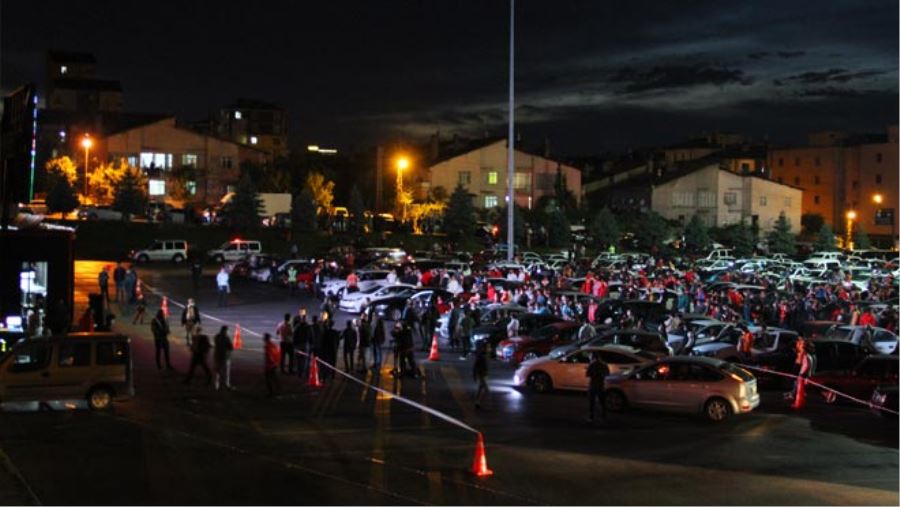 Kayserisporlu taraftarlar, Fenerbahçe-HES Kablo Kayserispor maçını araçlarında, stadın açık otoparkına kurulan dev ekrandan izledi