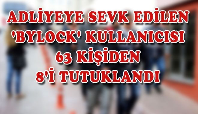 Kayseri İl Emniyet Müdürlüğü tarafından geçtiğimiz günlerde ´Bylock´ kullanıcısı olduğu tespit edilen esnaf ve çeşitli meslek gruplarından gözaltına alınan ve geçirildikleri sağlık kontrolünün ardından adliyeye sevk edilen 63 kişiden 8´i tutuklandı.
