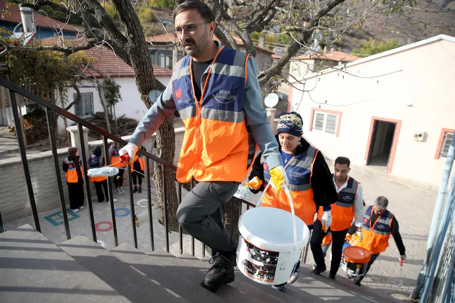Dağın yamacındaki okul için kolları sıvayan AFAD ekipleri, önce temizlik bakım işlerini yaptıkları okulun daha sonra boya ve tadilat işlerini tamamladı.