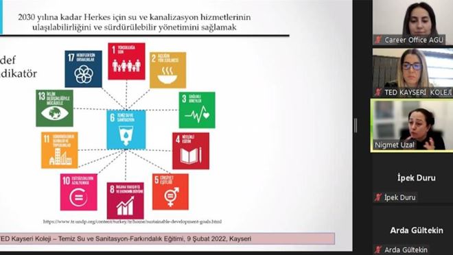 'Temiz Su Sanitasyon' konulu farkındalık eğitimi Abdullah Gül Üniversitesi İnşaat Mühendisliği Bölümü Öğretim Üyesi Prof. Dr. Niğmet Uzal tarafından 9. ve 10. sınıf öğrencilerine verildi. Tüm dünyada yoksulluğa son vermek, iklim değişikliği ile mücadele etmek, nitelikli eğitim, sorumlu üretim ve tüketimi yaygınlaştırmak gibi 17 ana başlıktan oluşan Birleşmiş Milletler (BM) Sürdürülebilir Kalkınma Hedefleri sosyal, kültürel ve ekolojik meselelerin çözümüne odaklanıyor.