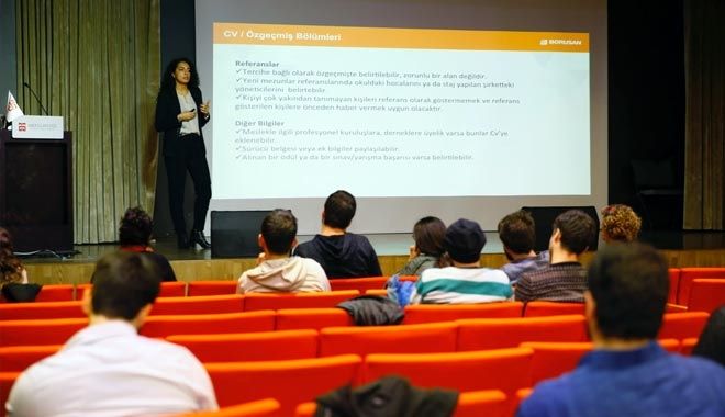 Ayrıca, öğrencilerle gerçek bir iş görüşmesi canlandırması yapıldığı seminerde, öğrencilerin CV´leri üzerinde çalışılarak, iyileştirmeler yapıldı. Mezun adayı öğrencilere, Holdingin İnsan Kaynakları uzmanları Derya Demirer ve Bilun Solukçu ile bire bir görüşme imkanı da sağlandı.