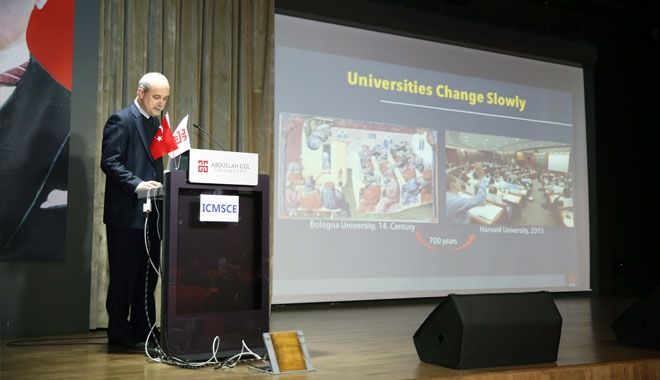 Açılış konuşmasından sonra söz alan AGÜ Rektör Yardımcısı Prof. Dr. İrfan Alan Türkiye´deki bilimsel gelişmeleri, Kayseri´deki ilerlemeleri ve Abdullah Gül Üniversitesi´nin eğitim, araştırma ve topluma katkı yönündeki bakış açısını konuşmacılara açıkladı. Daha sonra ise davetli konuşmacıların sunumlarına geçildi. Teksas Austin Üniversitesi´nden İnovasyon Stüdyosunun Müdürü Dr. Scott Evans üniverstelerinde uygulamalı eğitime nasıl önem verdiklerini ve bunu gerçekleştirmek için müfredat programlarında yaptıkları değişiklikleri ve öğrencilerin aldıkları eğitimin kalitesini nasıl arttırdıklarını uzaktan bağlantı yolu ile yaklaşık 1 saat süren konuşmasında anlattı.
