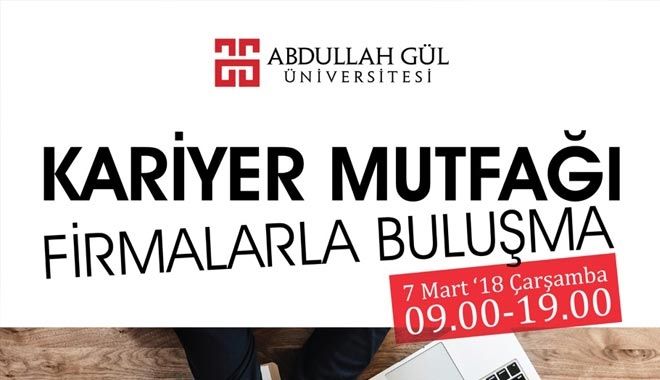 Bu yıl ilk kez mezun verecek olan Abdullah Gül Üniversitesi (AGÜ), mezun olacak öğrencilerini firmalarla buluşturarak onların hem iş bulabilme hem de staj için firma bulabilmelerine imkan sağlayacak.