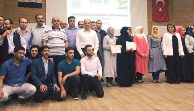 Konuşmaların ardından projede sertifika almaya hak kazanan Suriyeli öğrencilere sertifikaları verildi.