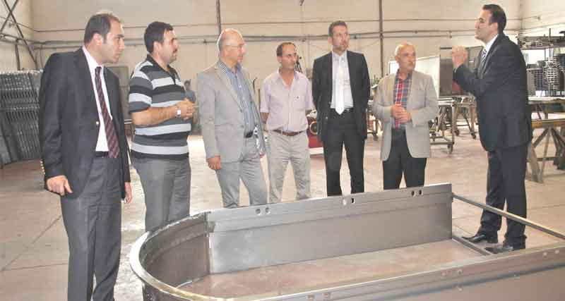 İlk olarak çelik kapı ve damper fabrikasını ziyaret eden vekiller, işletme sahibi Mehmet Tosun ve Dış Ticaret Müdürü Abdurrahman Bayraktar'dan üretimleri hakkında bilgi alarak, işletmeyi gezdi. Öksüzkaya, işletmenin otoparkında duran ve damperi yeni takılan, kamyona binerek, damperin çalışmasını kontrol etti.