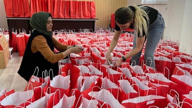 "Asrın felaketi" olarak nitelendirilen ve 10 ili etkileyen depremlerin ardından Kayseri’ye gelen depremzedelere AK Parti Talas Kadın Kolları’ndan hijyen seti dağıtıldı.