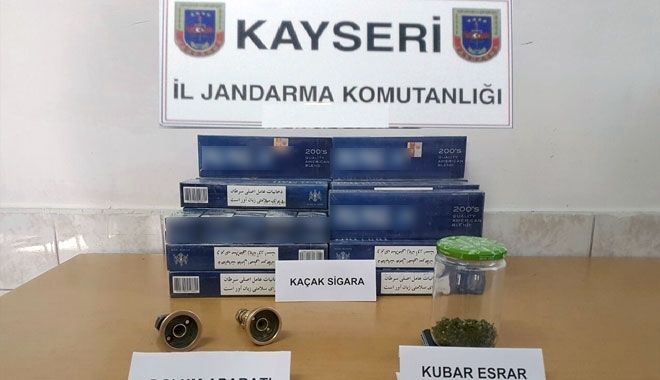 Kayseri´de jandarma ekipleri tarafından yapılan operasyonda 50 gram esrar, 242 paket kaçak sigara ele geçirilirken, 2 kişi gözaltına alındı.