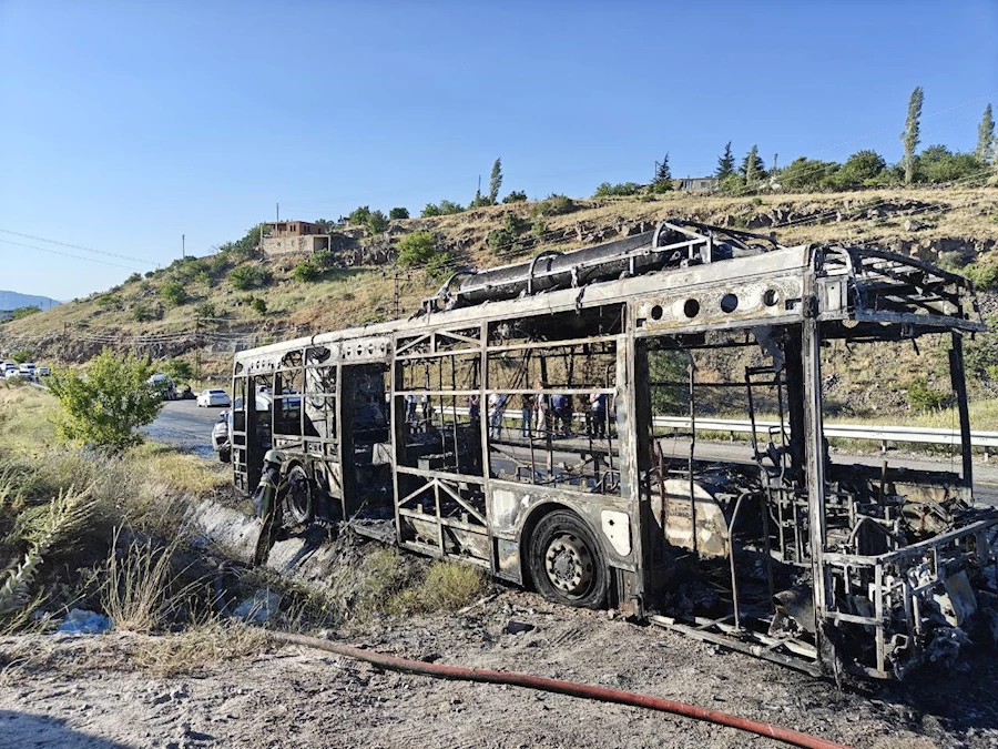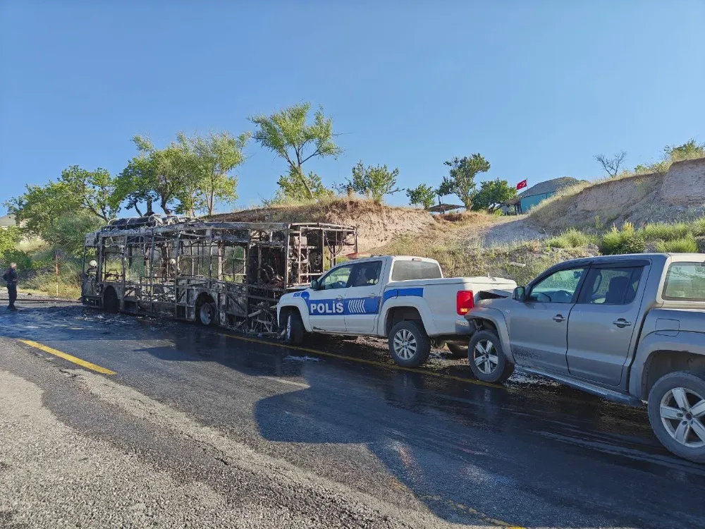 Haber verilmesi üzerine olay yerine polis sağlık ve itfaiye ekipleri sevk edildi. Otobüste bulunan 11 kişi ekipler tarafından tahliye edilirken, otobüs ise küle döndü.