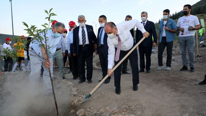 Ali Dağı 360 Yolu başlangıcında gerçekleşen etkinlikte çeşitli türlerden oluşan çam ve meyve ağaçları toprakla buluşturuldu. Ağaç dikme organizasyonuna Kayseri Valisi Şehmus Günaydın ve Talas Belediye Başkanı Mustafa Yalçın’ın yanı sıra Kayseri Üniversitesi Rektörü Kurutuluş Karamustafa, Diyanet İşleri Eski Başkanı Necmettin Nursaçan, KAYEMA Onursal Başkanı Şevket Bahçecioğlu, KAYEMA Başkanı Erdoğan Doğan, Milliyetçi Hareket Partisi (MHP) İl Başkanı Adnan İncetoprak ve çok sayıda vatandaş katıldı. “30 Ağustos Zafer Bayramı’na bundan daha güzel bir hediye olamazdı.” diyen Başkan Yalçın, gerçekleşen organizasyonun hem ülkeye faydalı bir etkinlik hem de ibadet olduğunu ifade ederek, “Zafer haftasındayız. İnanıyorum ki Başkomutanlık Meydan Muharebesi’ne hayatına mal olmuş bir mücadeleyle göğüs gerip dünyada unutulmaz savaşlar arasına yazdıran ve başarıyla sonuçlandıran Başkomutan Büyük Önder Mustafa Kemal Atatürk ve arkadaşlarına bundan daha güzel bir hediye olmazdı. 1922 adet fidanı toprakla buluşturmak herhalde bugün en anlamlı hem bir ibadet hem de faaliyet olsa gerek. Bu konuda KAYEMA Vakfı’na da çok teşekkür ediyorum.” dedi. (Kurum Bülteni)