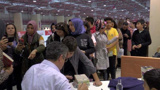 Kitap Fuarı'nda bulunan konferans salonunda okurlarıyla buluşan ünlü yazar Alişan Kapaklıkaya, söyleşi yaptı. Hayranlarının sorularını cevaplayan Kalpaklı, söyleşide hayranlarına bilgiler verdi.