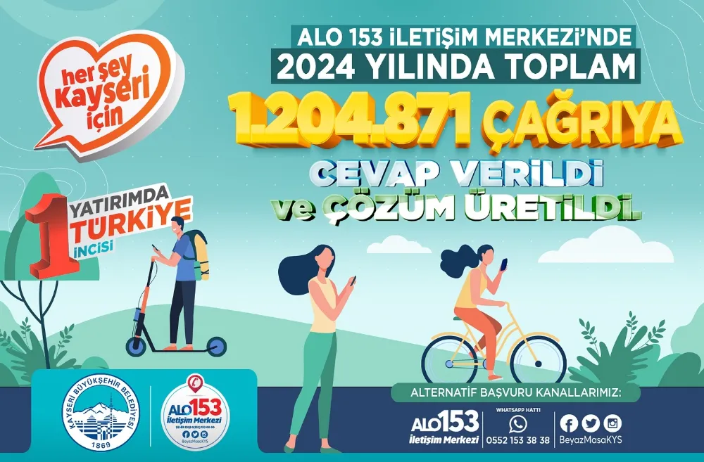 Alo 153 İletişim Merkezi, 2024 yılında 1 milyon 205 bin 94 çağrıyı cevaplarken vatandaşların talep, öneri ve şikayetlerine de cevap verdi. İletişim Merkezi, 2024'te şehrin günlük yaşamında önemli yer tutan birimleri de kapsayan 64 bin 321 kayıtlı başvuru oluşturdu.
