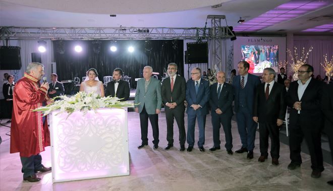 Flamingo De luxe düğün salonunda gerçekleşen düğün törenine Ekonomi Eski Bakanı ve Ak Parti Gurup Başkan Vekili Mustafa Elitaş, Enerji Ve Tabi Kaynaklar Eski Bakanı Taner Yıldız, Ak Parti Milletvekili İsmail Tamer, Ak Parti Eski Milletvekillerinden Sadık Yakut, Büyükşehir Belediye Başkanı Mustafa Çelik, İl Emniyet Müdürü İbrahim Kulular, Nevşehir Vali yardımcısı Mustafa Atsız Melikgazi, Kocasinan,Talas, İncesu, Yahyalı ve Yeşilhisar belediye başkanlarının yanı sıra AK Parti il Başkanı Hüseyin Cahit Özden, CHP il Başkanı Feyzullah Keskin, ve MHP il Başkanı Baki Ersoy´da katıldı. Düğünde KAYSO, Kayseri Ticaret Odası, Kayseri Ticaret Borsası, Kayseri Esnaf ve Sanatkarlar birliği gibi çok sayıda meslek örgütü ve STK başkanı da hazır bulundu.