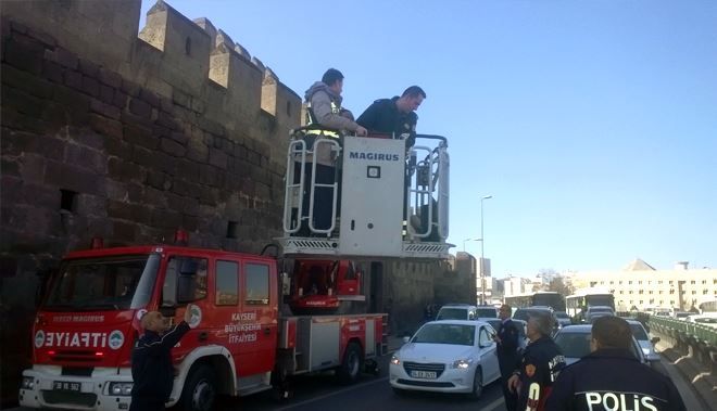 Tarihi Kayseri Kalesi´nin surlarına bir kadının çıktığının ihbar edilmesi üzerine, Hunat Camii karşısındaki surlara polis, 112 ve itfaiye ekipleri sevk edildi. Olay yerine ilk gelen polis ekipleri 53 yaşındaki H.K. ile görüşerek ikna etmeye çalıştı. Polis ekiplerinin görüşmeleri sonrasında ikna olan H.K.´nın dolandırıcıya altınlarını kaptırdığı ve bunalıma girerek surlara çıktığı öğrenildi.