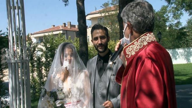 Covid 19 tedbirleri kapsamında gerçekleştirilen nikahta genç çift bir ömür boyu mutluluğa evet dedi. Nikah şahitleri ise çifte bir ömür boyu mutluluklar diledi.