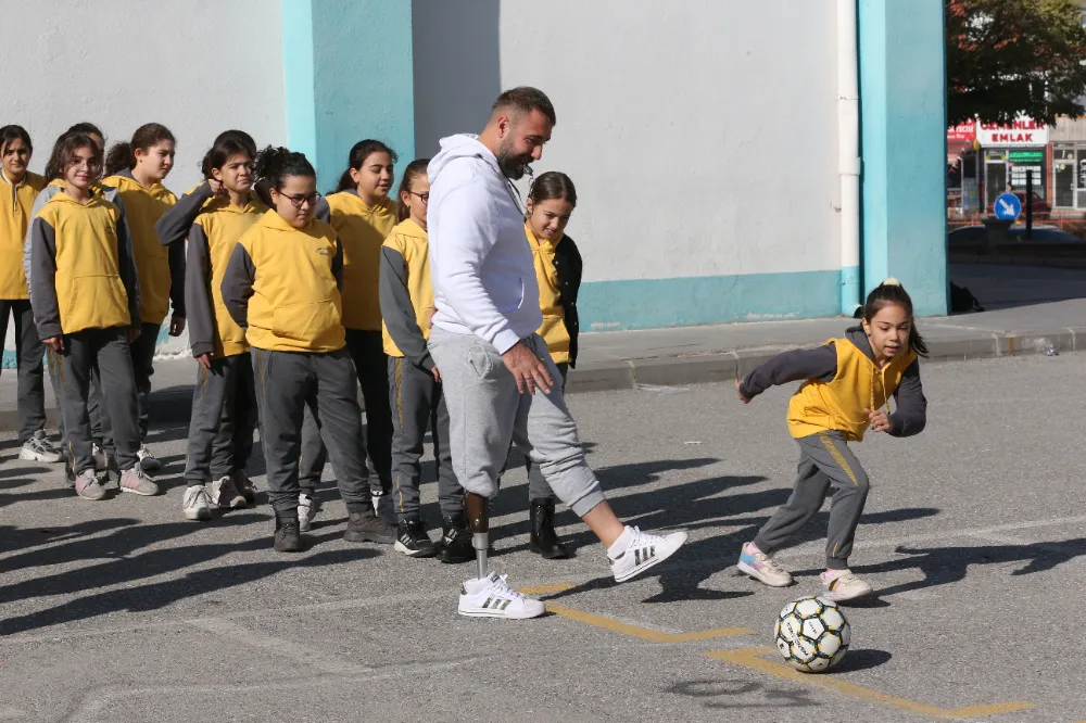 Kayseri'de doğuştan bir bacağı olmayan, Ampute Futbol Milli Takımı ile önemli başarılar kazanan beden eğitimi öğretmeni Feyyaz Gözaçık, "çocukluk duam" dediği öğretmenlik mesleğinde yeni nesiller yetiştiriyor.