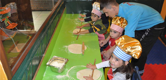 Kayseri’de özel bir kreşin Kayseri Forum Alışveriş Merkezi`nde düzenlediği etkinlikte, anaokulu öğrencilerinin pizza yapması, birbirinden eğlenceli görüntülerin yaşanmasına neden oldu. Yirmi anaokulu öğrencisinin katıldığı etkinlikte, küçük eller hamurlar yoğurdu, pizza malzemelerini hamurun üzerine döşedi. Öğretmenlerinin gözleminde ve usta pizzacıların eşliğinde pizza yoğuran minik öğrenciler, daha sonra pişen pizzalarını afiyetle yediler.