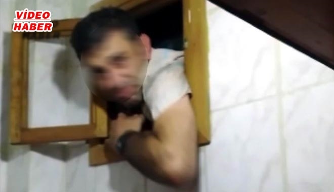 TUVALET PENCERESİNE SIKIŞMIŞ HALDE YAKALANDI