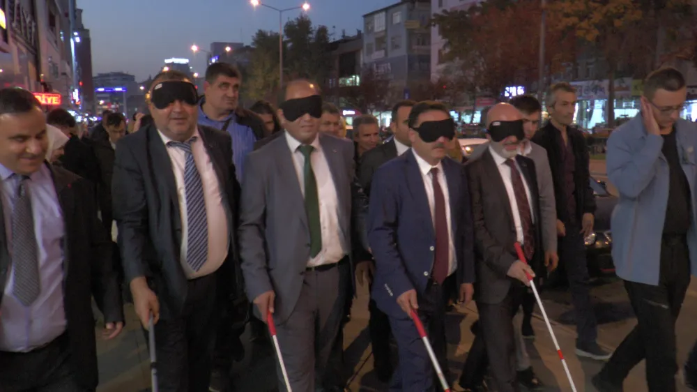 Kayseri Valisi Gökmen Çiçek ve Kocasinan Belediye Başkanı Ahmet Çolakbayrakdar, Altı Nokta Körler Derneği Kayseri Şubesi tarafından Beyaz Baston Farkındalık Günü dolayısıyla düzenlenen etkinlikte göz bandı takarak engelli vatandaşların yürüyüşüne katıldı.