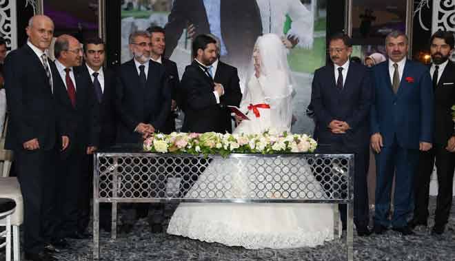 Mutlu bir gelecek için hayatlarını birleştiren Servet ile Mustafa davetlilerin alkışları arasında salona girdi. genç çiftin nikahını Büyükşehir Belediye Başkanı Mustafa Çelik kıydı. Nikah şahitleri ise Enerji ve Tabii Kaynaklar Bakanı Taner Yıldız, Vali Orhan Düzgün, Kayseri'nin Eski Valisi Danıştay üyesi Mevlüt Bilici Ak Parti Milletvekili Adayları Mehmet Özhaseki, Kemal Tekden ve Mustafa Büyükkatırcı yaptı.