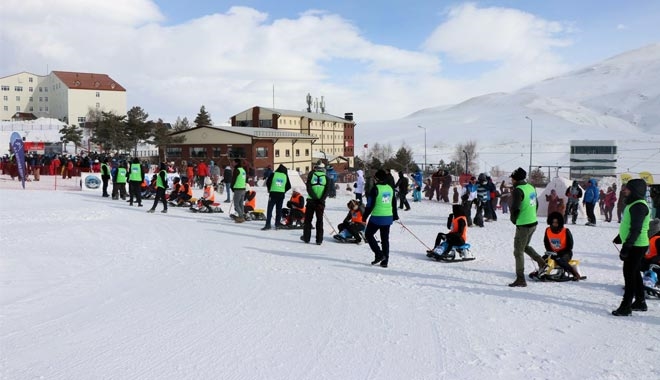 Erciyes´te düzenlenen ´Artık Çekilmez Oldun Yarışması´nda erkekler, kızak üstündeki eşlerini hızlı çekip, dereceye girmek için ter döktü.