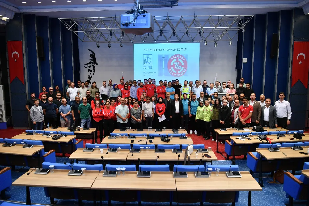 Büyükşehir Belediyesinden yapılan açıklamaya göre, Büyükşehir Meclis Salonu'nda farklı kurum ve kuruluşlarından eğitime katılanlara, asansör kazalarında mahsur kalanların güvenli şekilde kurtarılmasına yönelik bilgiler verildi.