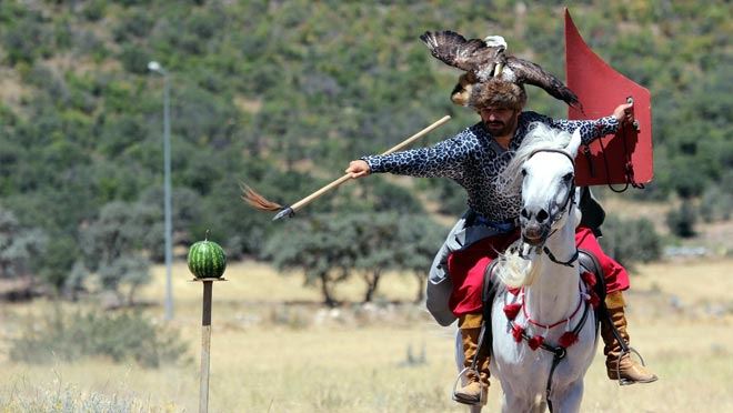 Kayseri’de yaşayan 27 yaşındaki Hazar Akçeken, küçüklüğünde izlediği ve Cüneyt Arkın’ın başrolünü oynadığı ’Malkoçoğlu’ filmlerinden etkilenerek ata sporu olan atlı okçuluğa merak saldı. Akçeken tasarladığı özel kıyafetiyle at üzerinde ok atıyor, kılıç, kargı gibi malzemeler kullanıyor.