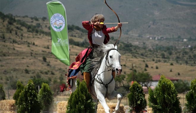 Erkek ve kadının aynı kategoride yarıştığı nadir spor dallarından atlı okçuluğun kadın temsilcileri at sürüp ok atmadaki maharetleriyle izleyenleri kendilerine hayran bırakıyor.