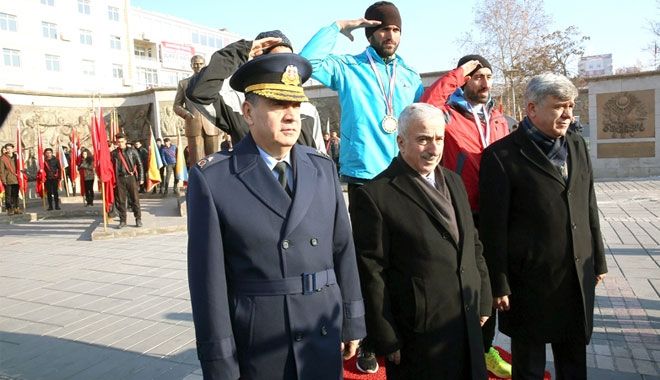 ?Büyük Atatürk Koşusu´ nda dereceye giren öğrencilere ödüllerinin verilmesi ile startı verilen tören de daha sonra Atatürk Anıtı´na çelenkler sunuldu.