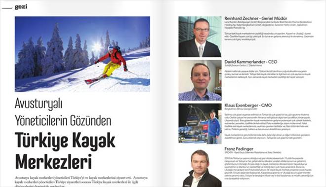 Derginin ilerleyen sayfalarında ise, Türkiye`deki kayak merkezlerini gezen Avusturyalı kayakçıların ve uzmanların kayak merkezleri hakkındaki görüşlerine yer veriliyor.