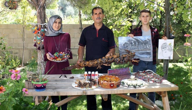 Kayseri´nin Özvatan ilçesinde Turgay Kahraman (51), ağaç köklerinden eserler yapıyor. Kızı Nihal (23) ise doğadan topladığı taşlarla süsleme sanatı yapıyor. Oğlu Emre de (19) yaptığı kara kalem çalışmalarla ressam olma yolunda ilerliyor.