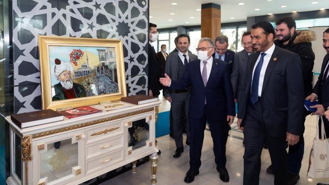 Kayseri Büyükşehir Belediye Başkanı Dr. Memduh Büyükkılıç’ı ziyaret eden Birleşik Arap Emirlikleri Ankara Büyükelçisi Saeed Thani Hareb Al Dhaheri, KAYMEK kursiyerleri tarafından hazırlanan el emeği göz nuru eserlere hayran kaldı. Büyükelçie Dhaheri, destek ve teşvik amacıyla eserlerden satın alarak sanata ve sanatçıya katkıda bulundu.