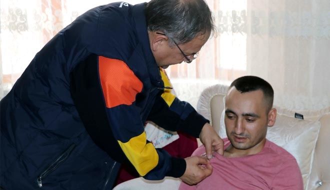 Bakan Özhaseki, ilk olarak, Zeytin Dalı Harekatı´nda gazi olan Uzman Çavuş Bahadır Özkan´a ziyarette bulunarak, geçmiş olsun dileklerini iletti.